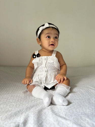 Sweet White Eyelet Ruffle Top and Black Bloomers with White Polka Dots