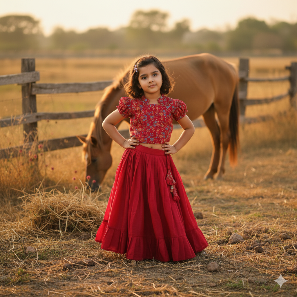 Custom Stitch Ethnic Girl Skirt with Red Blouse Top- Sneak