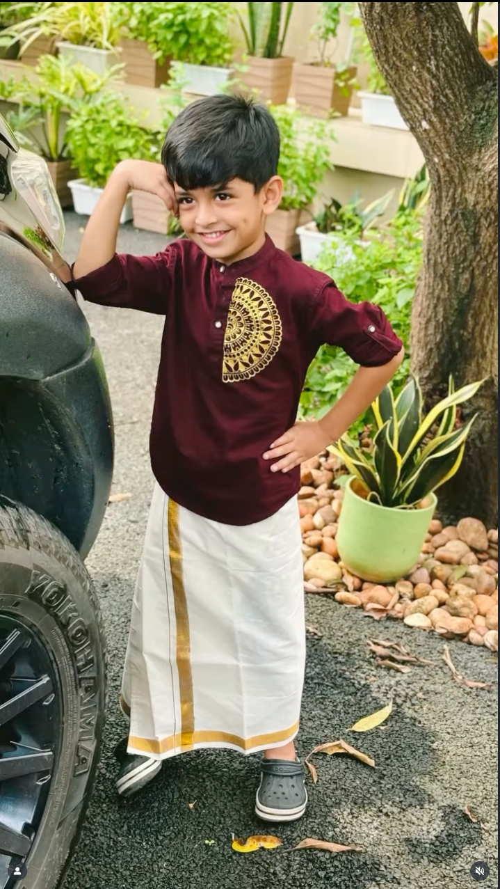 Ethnic Boys Blue Kurtha and Dhothi Set