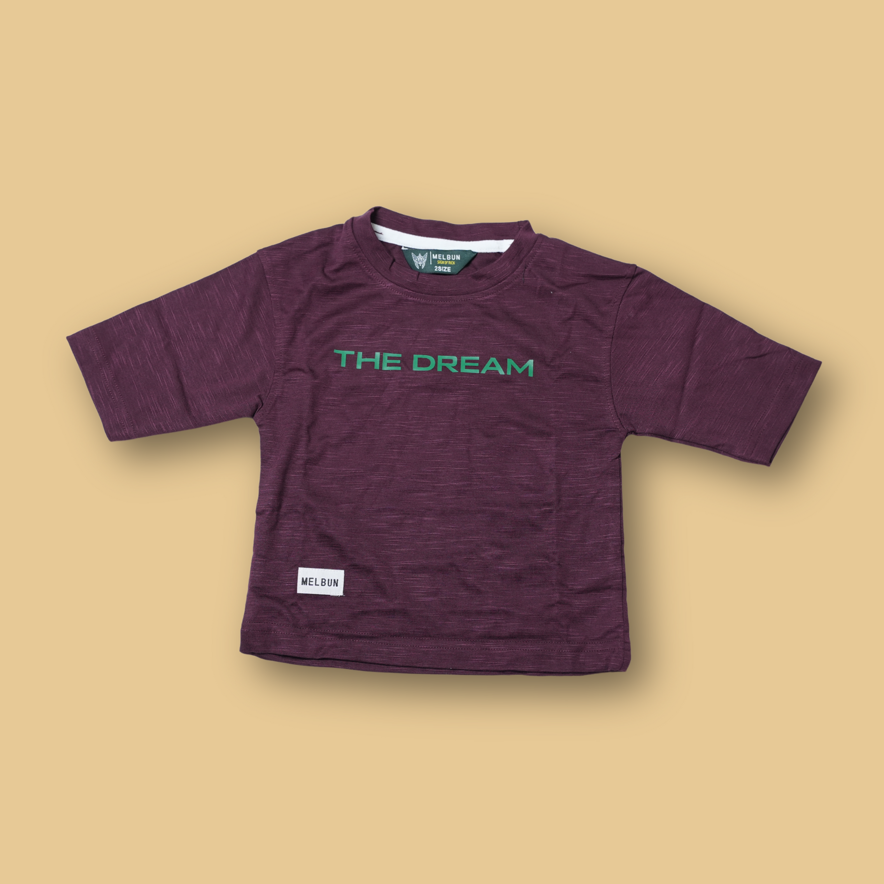 • Rich Burgundy Textured t-shirt with white logo patch and ribbed detail.