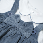 Sweet Grey Corduroy Dress with White Peter Pan Collar Top