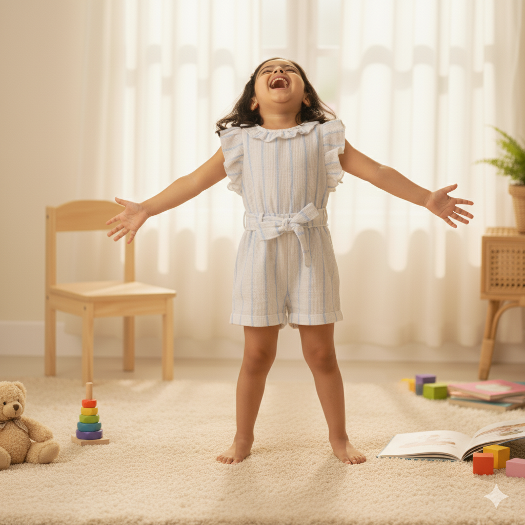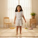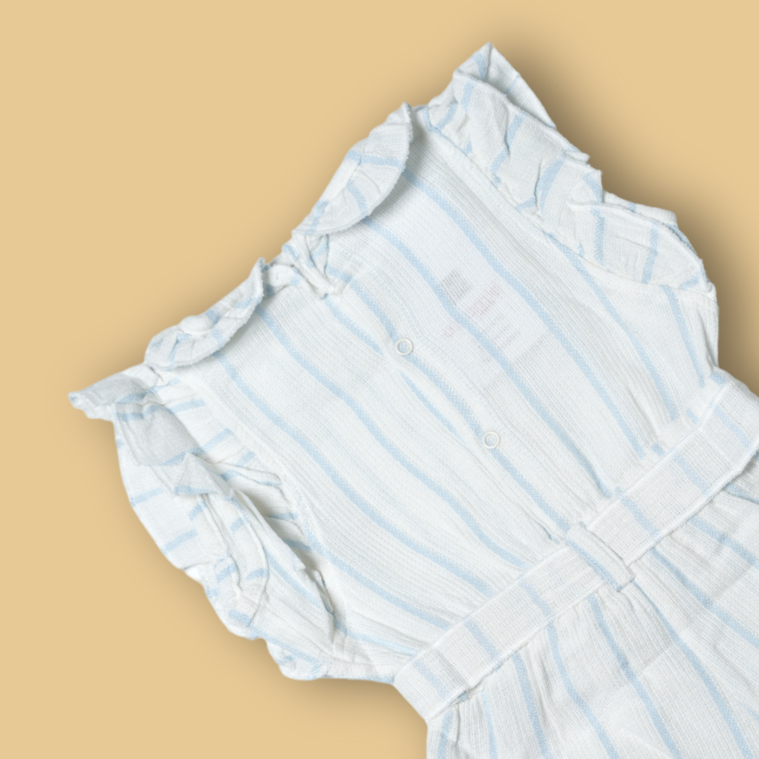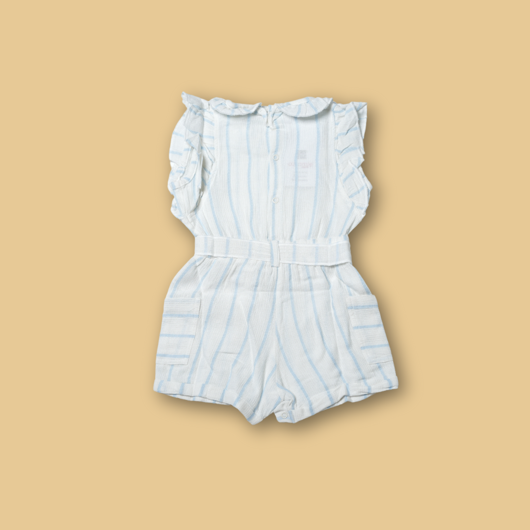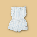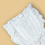Sweet Blue Striped White Romper with Ruffle Sleeves