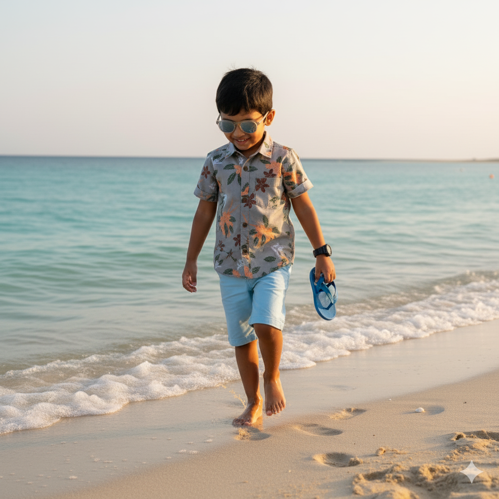 Boys Slim Fit Floral Printed Grey Casual Shirt