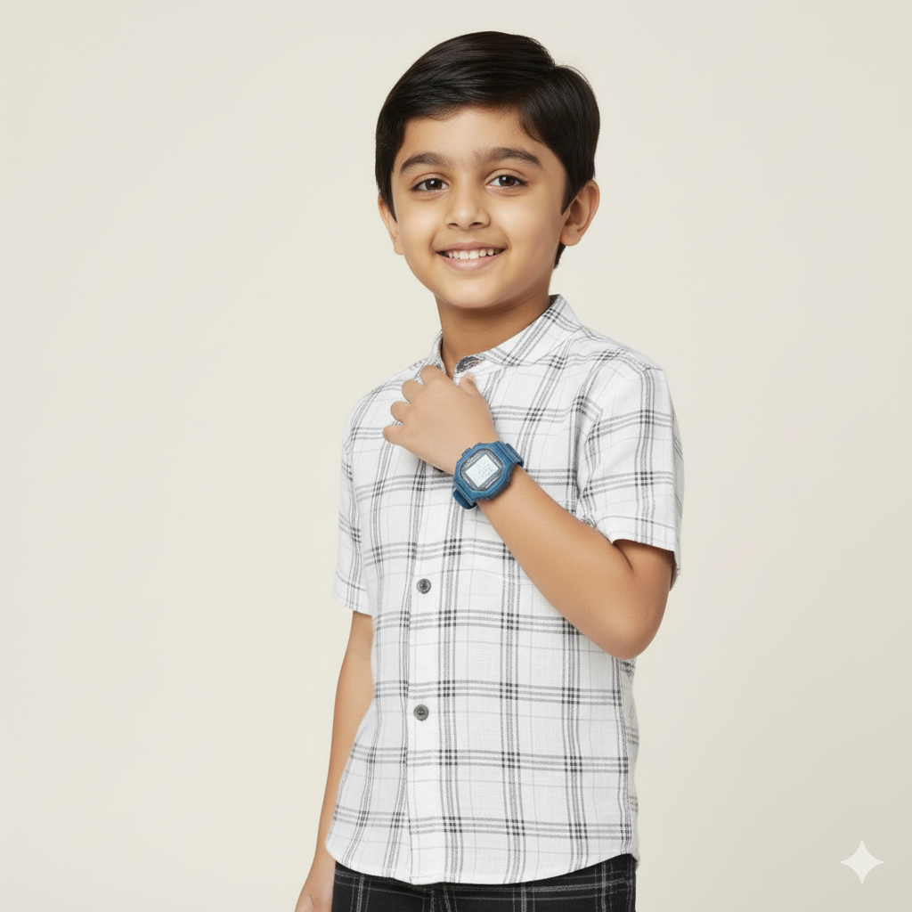 Boys Slim Fit Printed Casual Check Shirt and Shorts Set