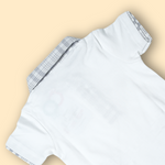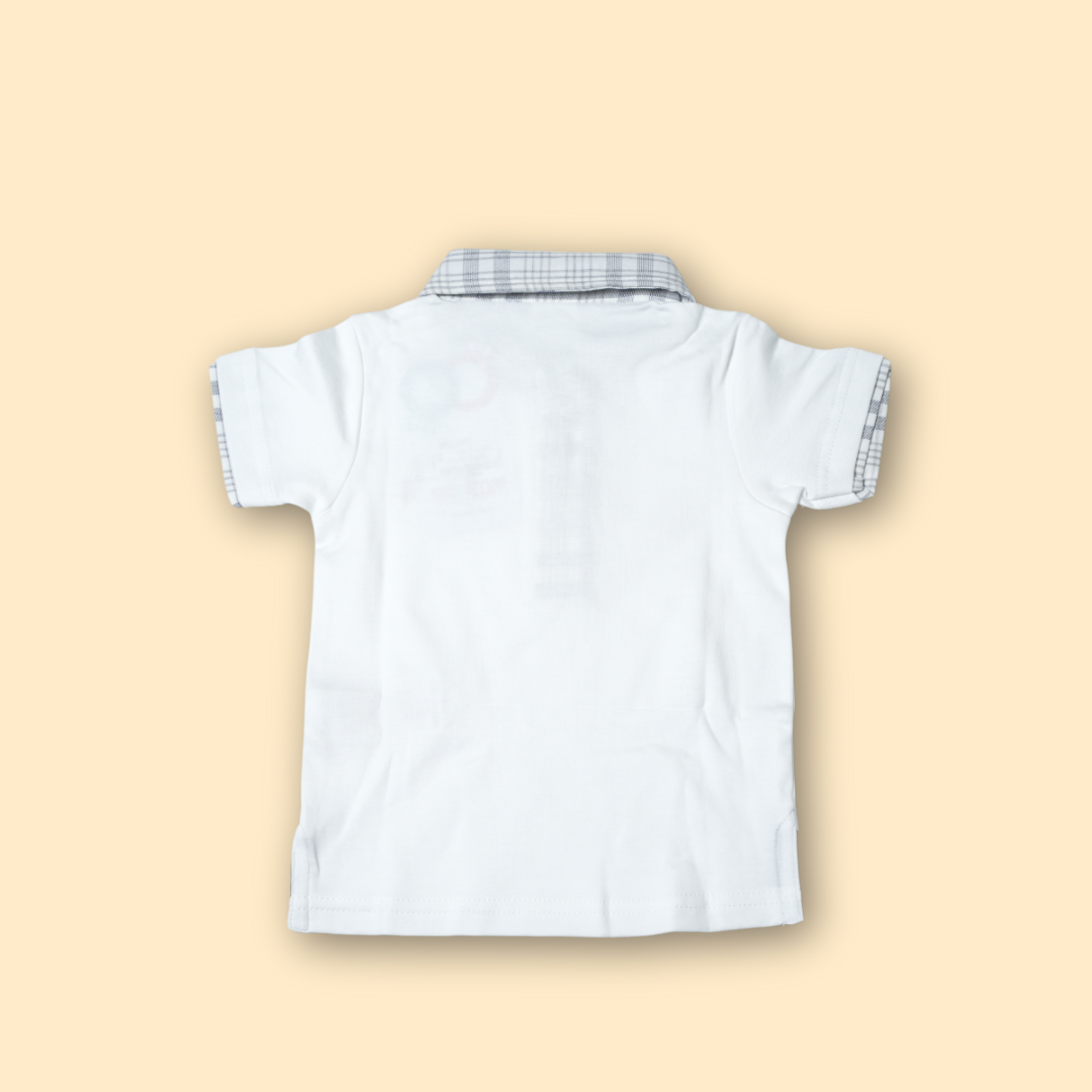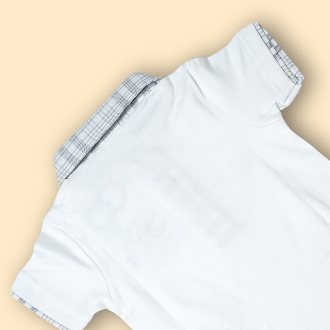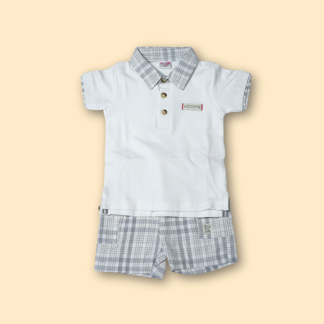 Classic White Polo with Grey Check Collar and Matching Plaid Shorts