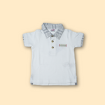 - Classic White Polo with Grey Check Collar