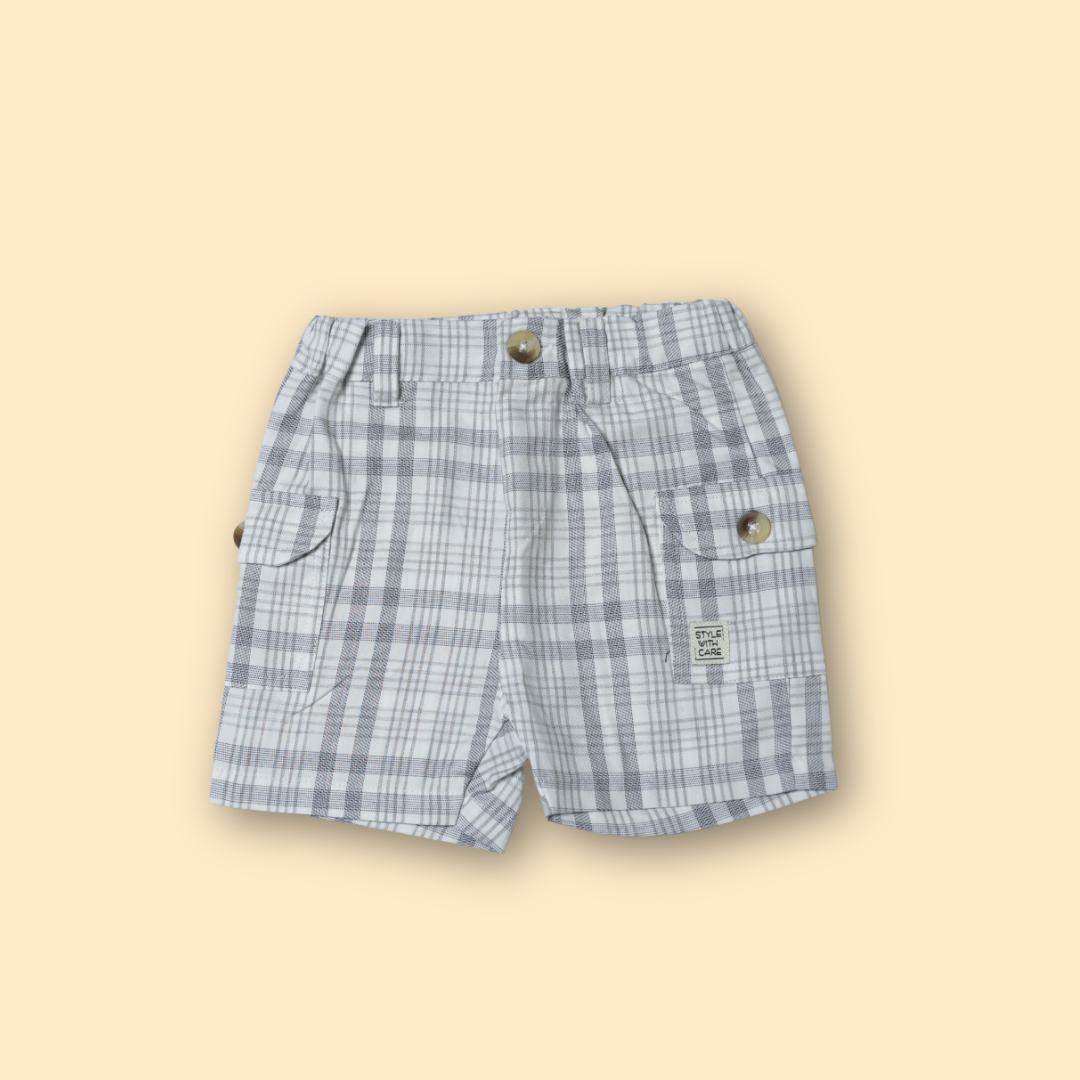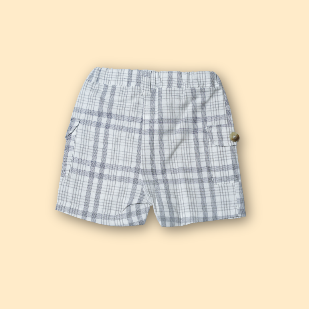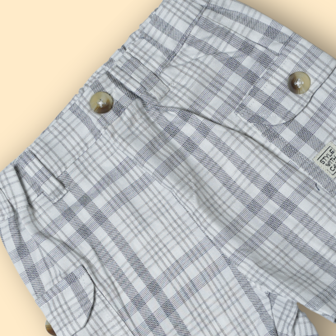 - Matching Grey Check Plaid Shorts.