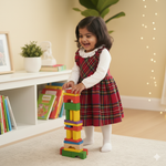Festive Red Plaid Dress with White Long Sleeve Top and Ruffle Collar