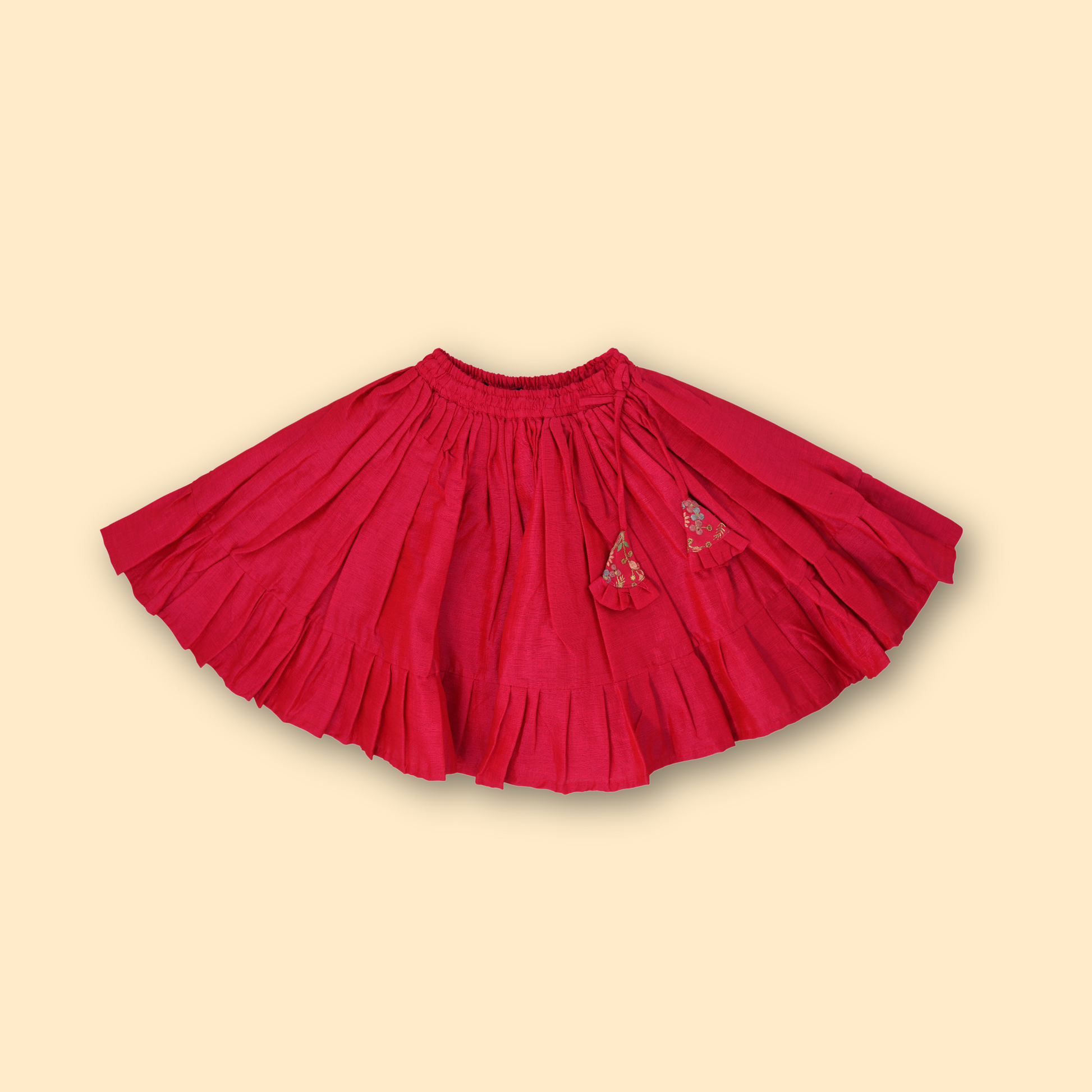 Girls Ethnic Floral Embroidered Flare Red Dress set