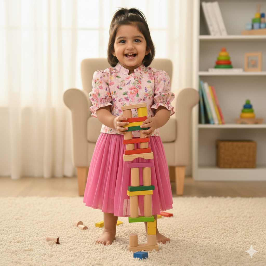 - Pink Balloon Midi at Knee Length with Elasticated Waist