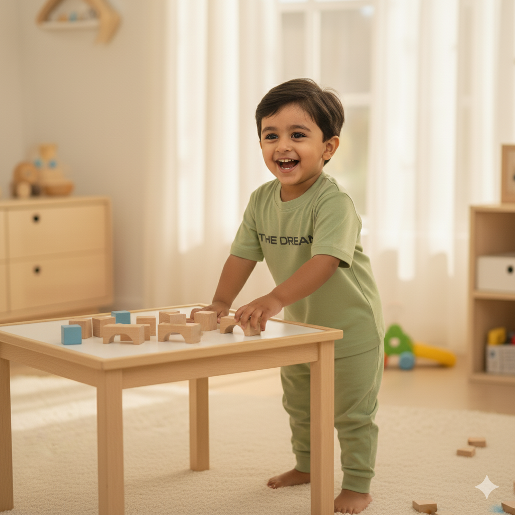 - Fresh Lime Green Textured t-shirt with white logo patch and ribbed detail.